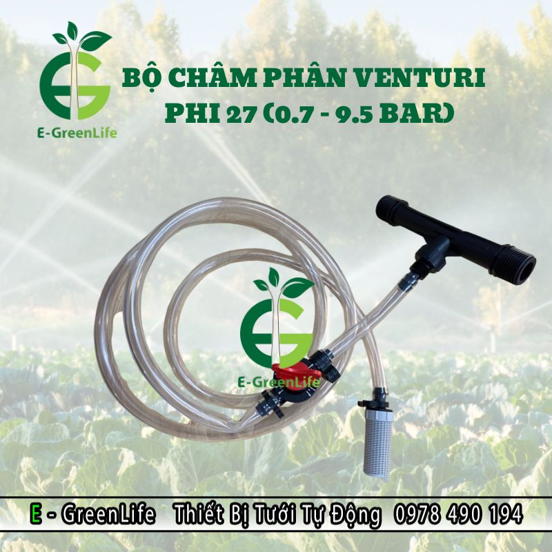 - Ứng dụng: Bộ châm phân Venturi phi 27 sử dụng hút phân bón, dinh dưỡng dạng dung dịch, không khí (Oxy) để cung cấp cho hệ thống, đưa dưỡng chất đến cây thông quan béc tưới/vòi tưới