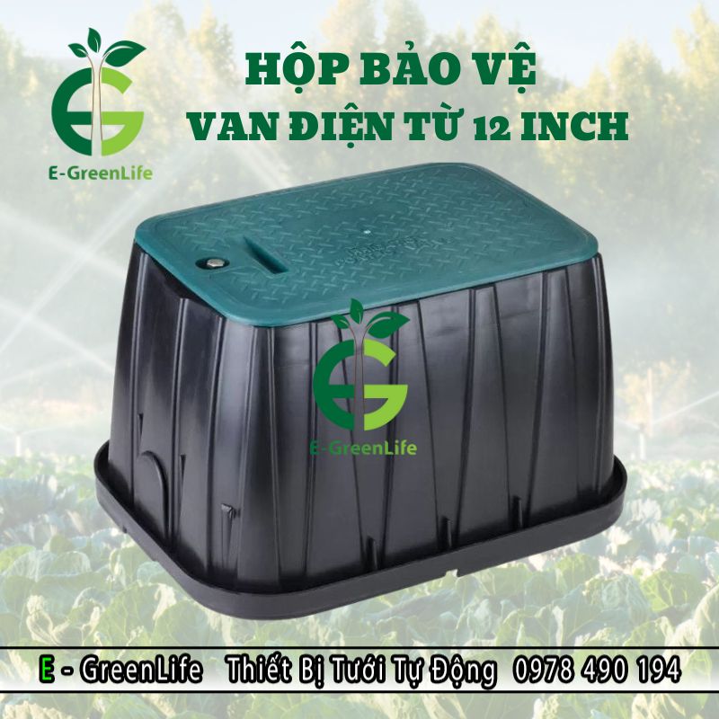 Hộp bảo vệ van 12 inch (12″) là hộp đựng van là vỏ bảo vệ chuyên dụng cho các loại van (van điện từ, van lấy nước nhanh…), được thiết kế để đặt chìm dưới đất hoặc giữa thảm cỏ và có kích thước 12 ich tương đương 40 x 53 x 33.5 cm. Bà con thường sử dụng hộp này để che chắn van khỏi va đập, mưa, bùn đất, rễ cây và ánh nắng trực tiếp làm giảm hư hỏng cơ khí và sự cố điện.
