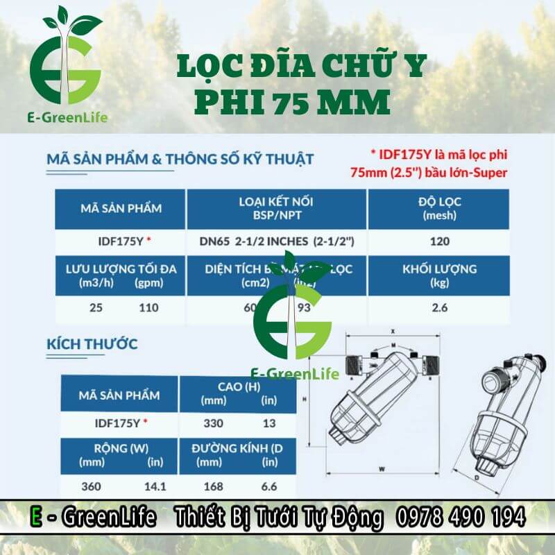 Mua lọc đĩa chữ Y phi 75 tại E-Greenlife, chủ nhà, chủ trang trại không chỉ mua được các thiết bị tưới nước tự động, hiệu quả, mà còn có đầy đủ phụ kiện bền bỉ, chất lượng, chia sẻ thông tin hữu ích trong việc chăm sóc vườn, làm nông. Đặc biệt ship hàng nhanh chóng, bảo quản thiết bị cẩn thận.
