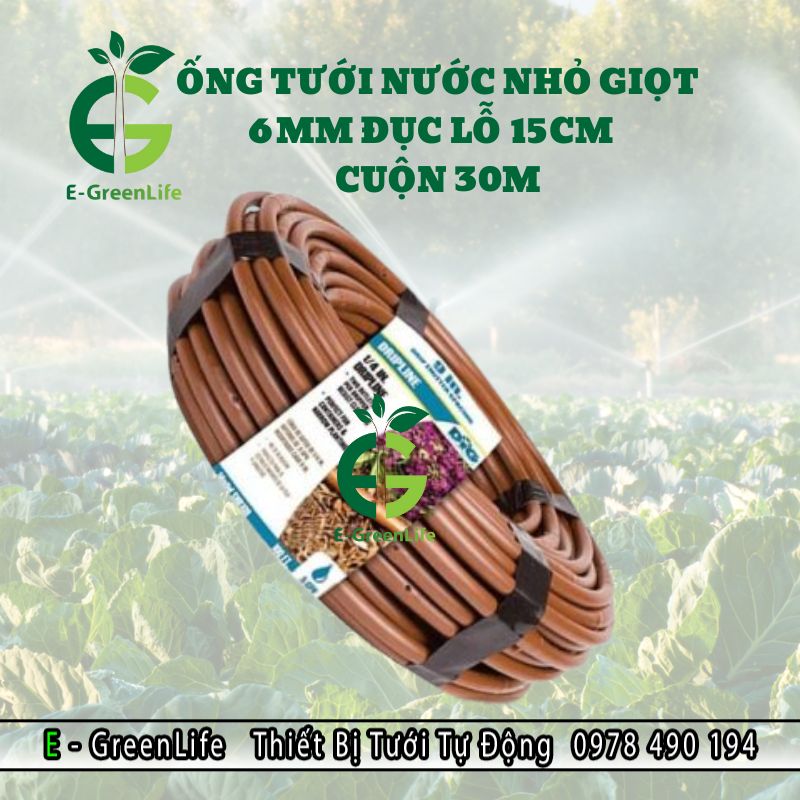 E-Greenlife địa chỉ ống tưới nhỏ giọt 6mm đục lỗ 15cm cuộn 30m bền, tiết kiệm nước