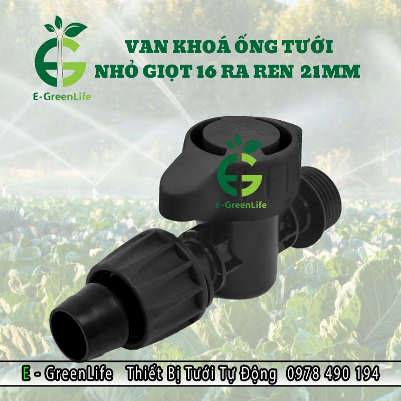 E-Greenlife giới thiệu van khoá ống tưới nhỏ giọt 16mm ra ren 21mm màu đen cho bà con đang dùng ống PVC 21mm, muốn tách nhánh phụ là ống nhỏ giọt 16mm tưới luống rau hoặc hàng cây. Loại van có khoá này giúp nước chuyển tiếp từ hai loại ống chính, phụ khác nhau và điều chỉnh dòng nước từng nhánh, mở/tắt dễ dàng khi không cần tưới khu vực đó. Sản phẩm tuy nhỏ nhưng cực kỳ tiện lợi khi bà con chia khu vực tưới tại các vườn rau, cây ăn trái, hoa màu…